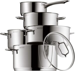 Oorspronkelijke prijs was: €875,00.€529,00Huidige prijs is: €529,00.WMF Astoria 5 delige pannenset