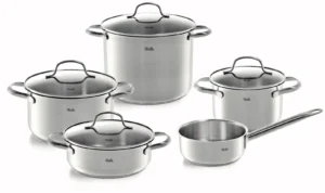 Oorspronkelijke prijs was: €679,00.€599,00Huidige prijs is: €599,00.Fissler Profi 5 delige pannenset met rvs deksels