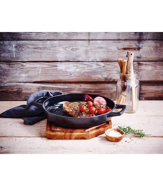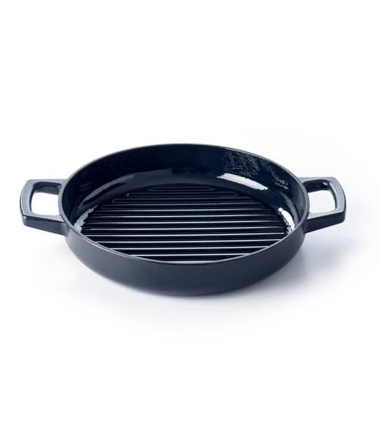 - Deze Alva gietijzeren grillpan Nori van 28 cm heeft hoge ribbels waardoor je gerechten mooi carameliseren maar ook zorgen voor een mooi grillpatroon.