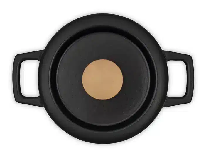 Het duurzame gietijzeren materiaal is een uitstekende warmtegeleider en houdt de warmte lang vast.