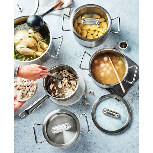 Een uitgebreide maaltijd voor je gezin of liever een snel recept? Dat kan op elke kookplaat, ook inductie. Het glasdeksel laat je toe om je bereiding in de gaten te houden, zonder telkens het deksel op te moeten tillen. De praktische grote grepen zijn zorgvuldig gelast, zodat er geen vuiltje tussen kan. Met een handige maatverdeling aan de binnenkant van de pan zie je precies hoeveel liter je in de pan hebt gedaan.