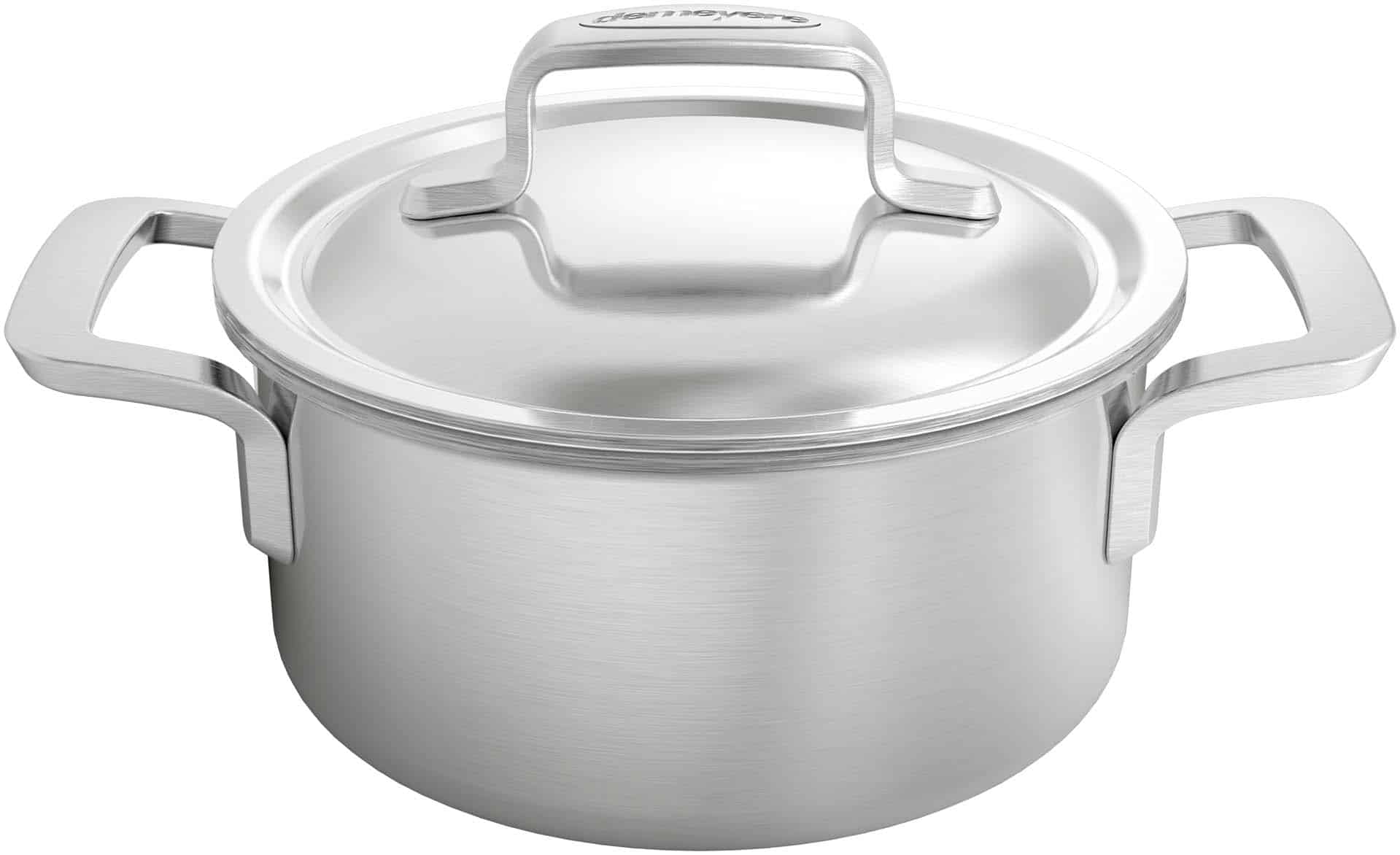 De Demeyere Intense 5 Kookpan 16cm 1,5liter zal u goed bevallen door de superieure kookeigenschappen van de Demeyere 5 Ply technologie. De pan is opgebouwd uit 5 legeringen en aluminium en heeft een buitenlaag van roestvrijstaal. Hierdoor is de pan magnetisch en geschikt voor de inductie kookplaat. De bodem van de pan is zo vormvast dat u zelfs op inductie kunt koken nadat u de pan op gas heeft gebruikt. Door de 5 Ply techniek verdeelt de warmte zich egaal door de hele pan en blijft ook in de pan door de isolerende dubbelwandige deksel, dit scheelt in kooktijd en energie(kosten). De handvaten zijn hygiënisch aan de pan gelast dus er kan geen vuil ophopen tussen de pan en de grepen. De diameter van deze Demeyere Intense Kookpan is 16cm, de inhoud 1,5 liter.