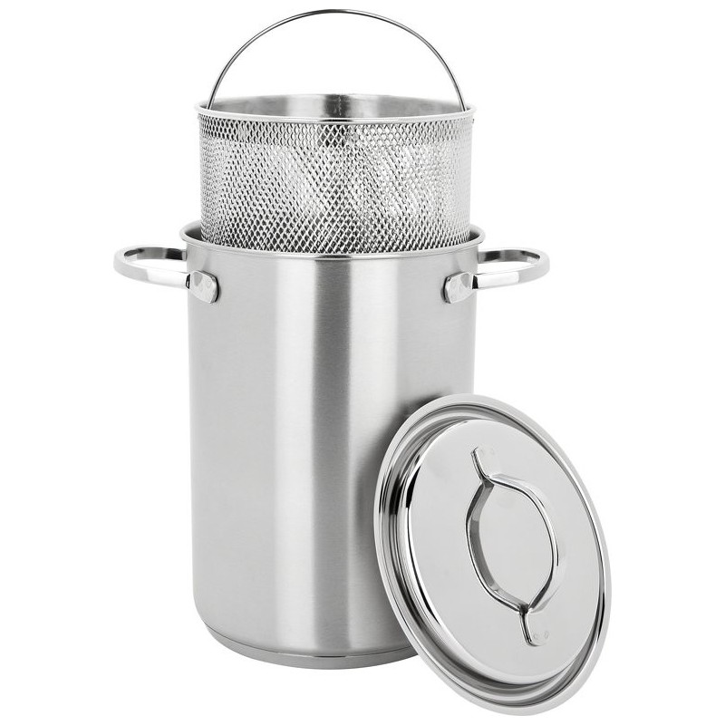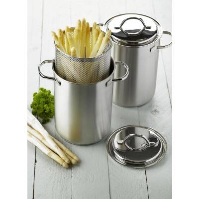 De Demeyere Resto 3 aspergepan is gemaakt van hoogwaardig rvs en door het  fijnmazig mandje ook heel geod te gebruiken voor het koken van spaghetti of andere pasta. Door de 3-laags bodem van 4mm dik is de Resto pan geschikt voor alle warmtebronnen inclusief inductie. De Demeyere Resto 3 aspergepan is vaatwasserbestendig en heeft een doorsnede van 16cm (bodemdoorsnede 14cm).