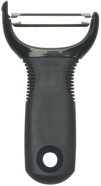 Deze dunschiller vanOXO Good Grips isperfect voor het schillen van aardappels, komkommers, appels, wortels en meer! De dunschiller heeft een scherp roestvrijstalen blad dat gemakkelijk door de schil van zelfs de hardste fruit en groentesoorten glijdt. En de zachte, comfortabele greep steunt je hand tijdens het schillen en is anti-slip, zelfs wanneer je handen nat zijn. De dunschiller is ook te gebruiken als je linkshandig bent en is voorzien van eenhandige aardappeloog verwijderaar.