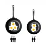 Deze koekenpan kan hoge temperaturen verdragen en is daarom zeer geschikt voor het bakken van vis, vlees, aardappeltjes, pannenkoeken of wraps en het bereiden van een heerlijke paella of tosti. Deze pan wordt razendsnel heet. Zorg er daarom voor dat je niet al te hard van stapel loopt met je fornuis of kookplaat. Want als hij te snel opwarmt, zou hij kunnen scheuren of breken.