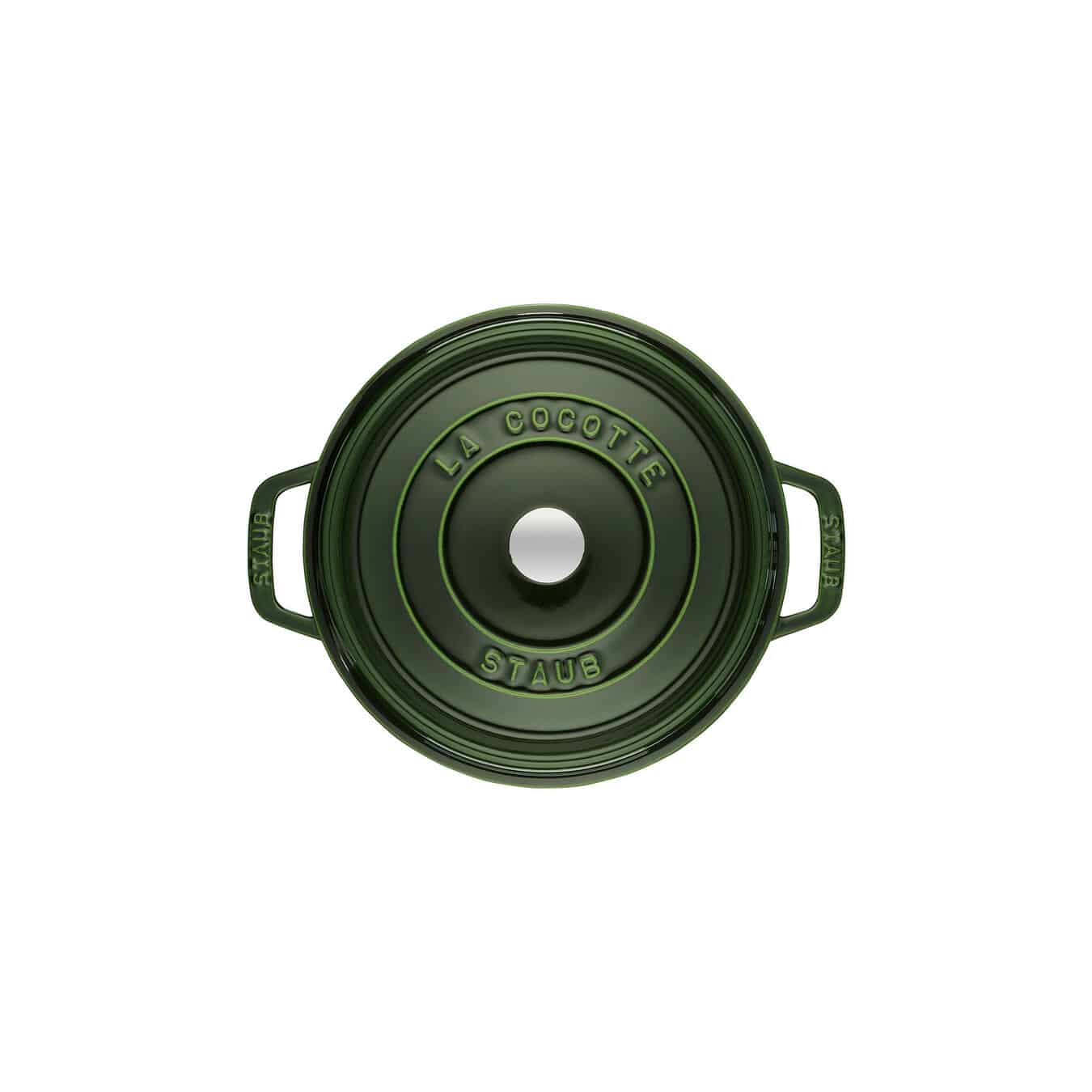 Traag gegaarde gerechten zijn helemaal in en jonge koks willen deze kunst net zo graag beheersen als ervaren chefs. De unieke smaken van ‘slow-cooked’ vlees en groenten ontwikkelen zich optimaal in een braadpan, zoals deze ronde basilicumgroene cocotte van Staub. Hij heeft niet alleen een mooi, eenvoudig design, maar bestaat ook uitzonderlijke materialen. Met haar diameter van 26 cm is deze braadpan de ideale keukenpartner voor kleine gezinnen of singles. De cocotte heeft een inhoud van 5,2 l en is perfect om een kleinere hoeveelheid groenten, vis of vlees te bereiden. Aan de binnenzijde is de cocotte afgewerkt met matzwart email om het voedsel perfect dicht te schroeien en de natuurlijke smaken in de ingrediënten te verzegelen. De eigenschappen van het materiaal worden alleen maar beter naarmate u de pot vaker gebruikt. Natuurlijk is de Staub cocotte geschikt voor alle kookoppervlakken. Dankzij de combinatie van gietijzer en email wordt de warmte perfect verspreid in de cocotte. Gietijzer is snel en gemakkelijk te reinigen en tegelijk uiterst slijtvast. Ontdek zelf hoe praktisch de Staub cocotte is en creëer moeiteloos hemelse stoofschotels in uw eigen keuken.